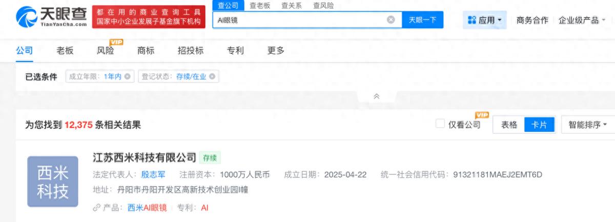 有统计显示,2025年,国内发布的AI眼镜产品超过40款。而天眼查APP信息显示,成立一年内的AI眼镜相关企业就有一万多家。